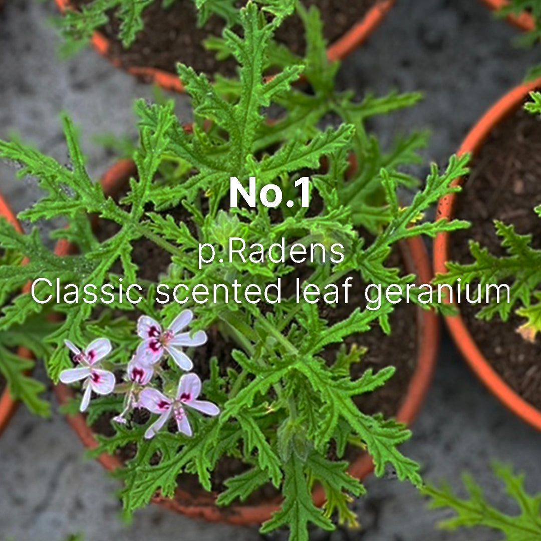 Geranium No.1 takes inspiration from the Pelargonium Radens is a classic scented geranium fragrance with hints of rose, lemon, mint and cedar.