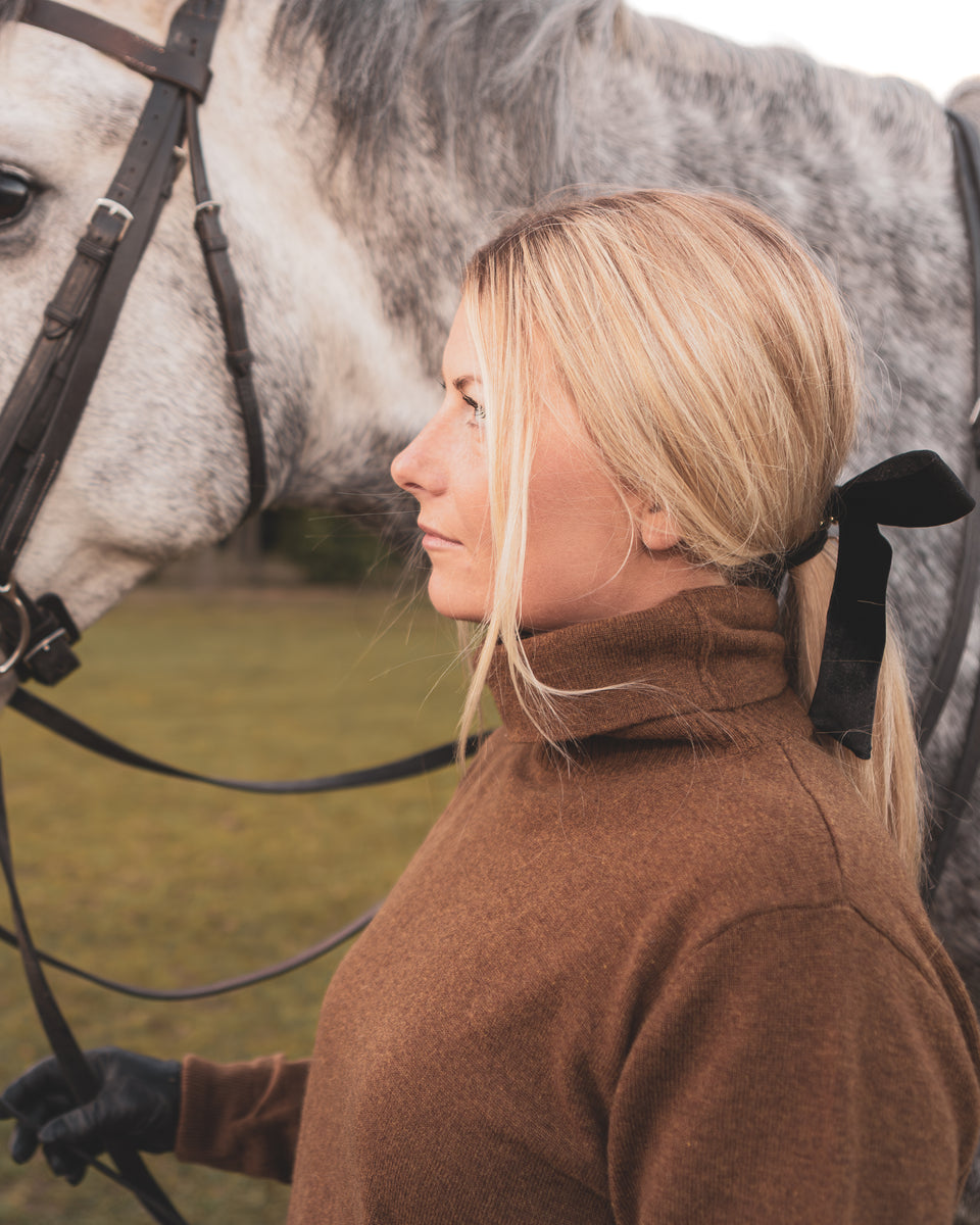 Chalk Bexhill Velvet Bow Ponytail Pin in Bear Brown has been Inspired by the classic 80's countryside style, this hair accessory features a soft velvet texture and a pin to secure into your ponytail.