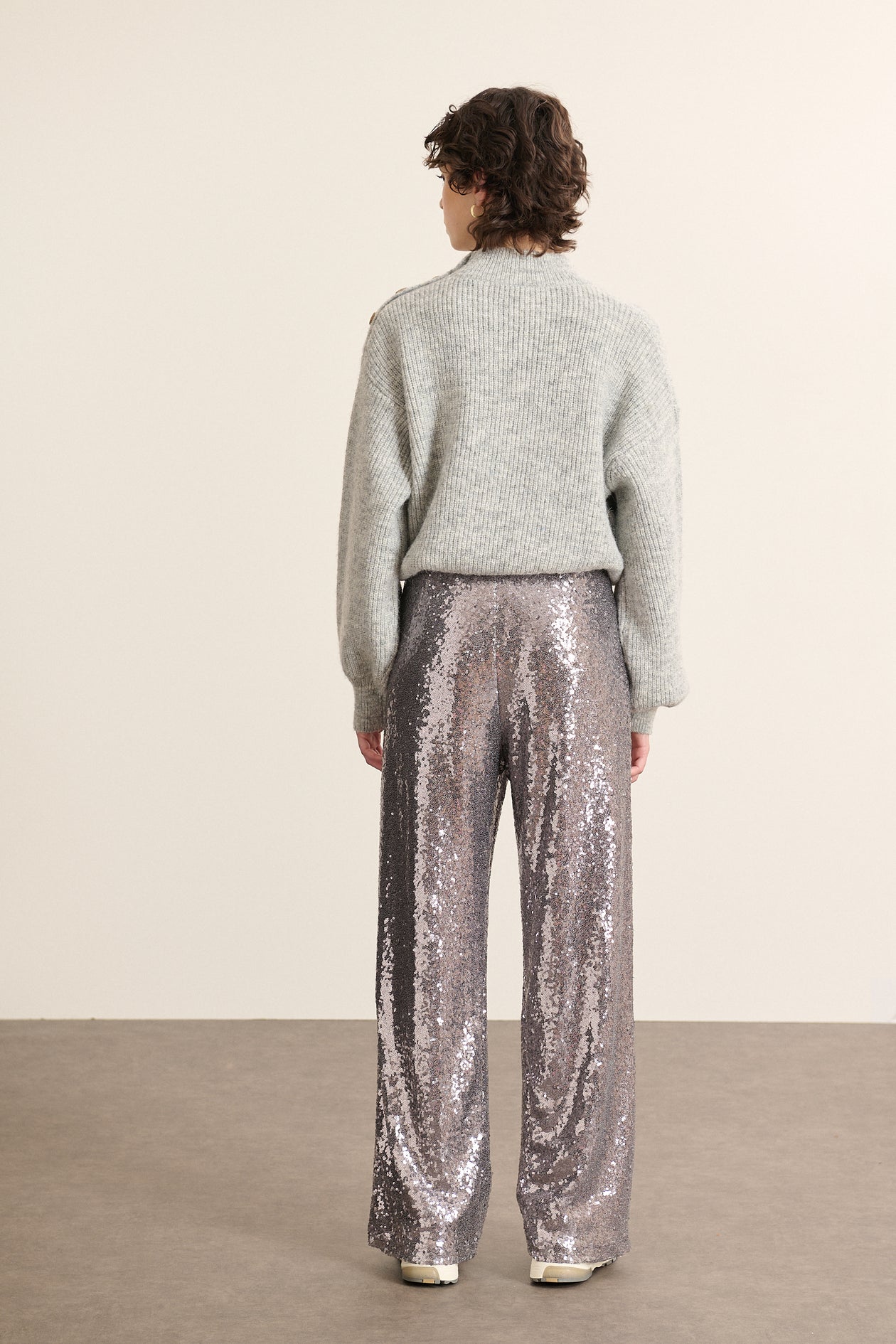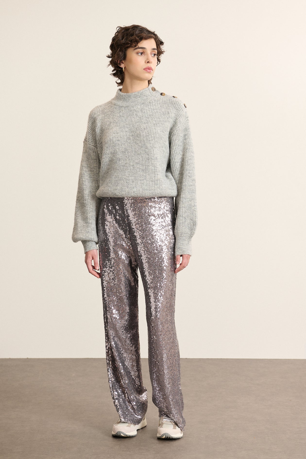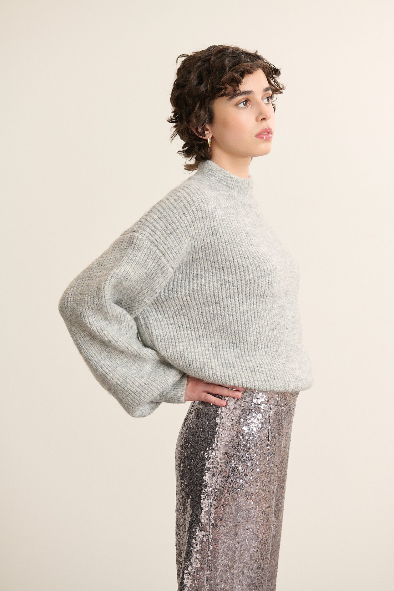 Garance Paris Kimbo in grey, a sweater with a loose fit, highlighted by a high collar buttoned at the shoulder. Each buffalo horn button brings a natural and original touch to this model. Soft and comfortable, it accompanies you in style throughout the day, in elegant simplicity.