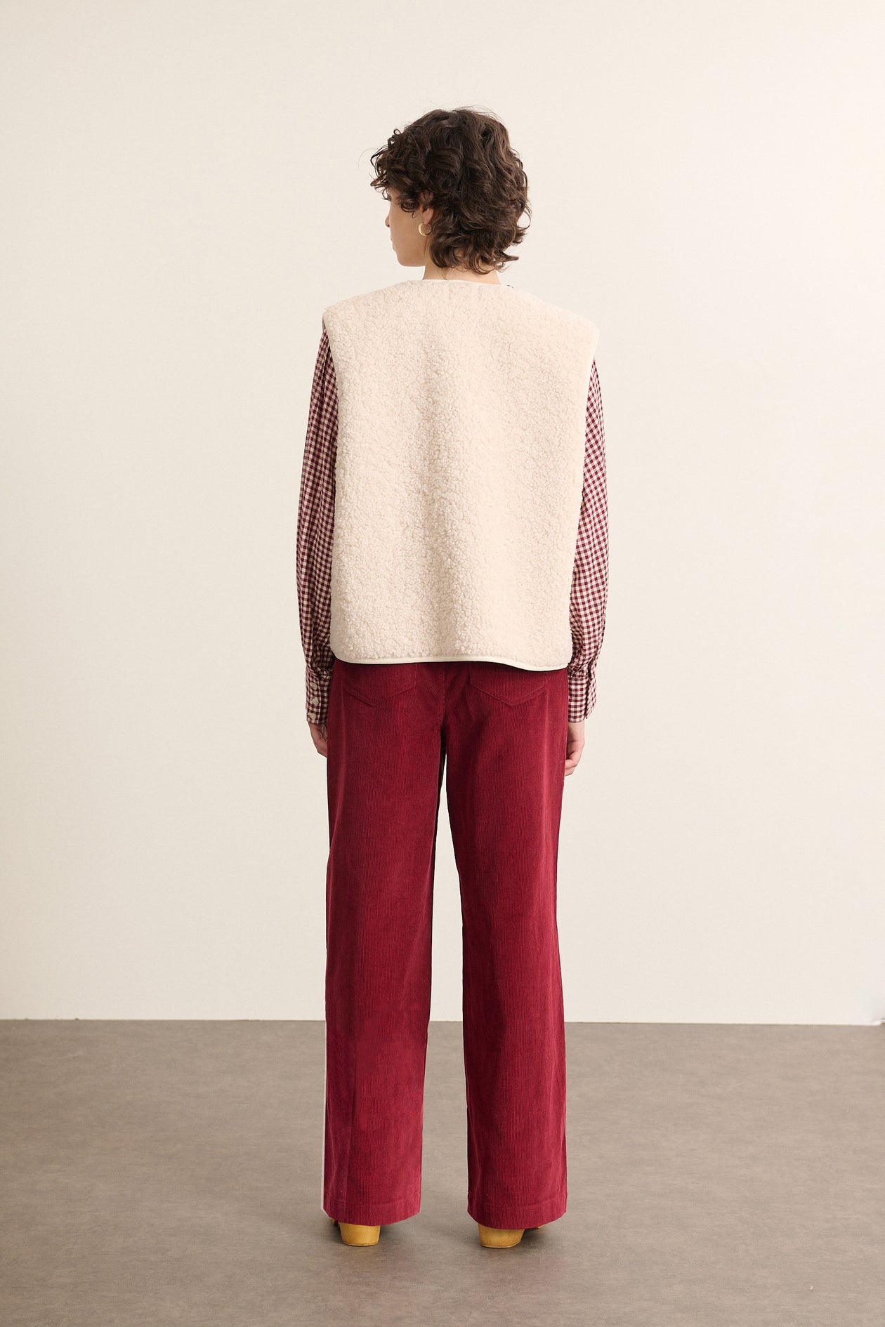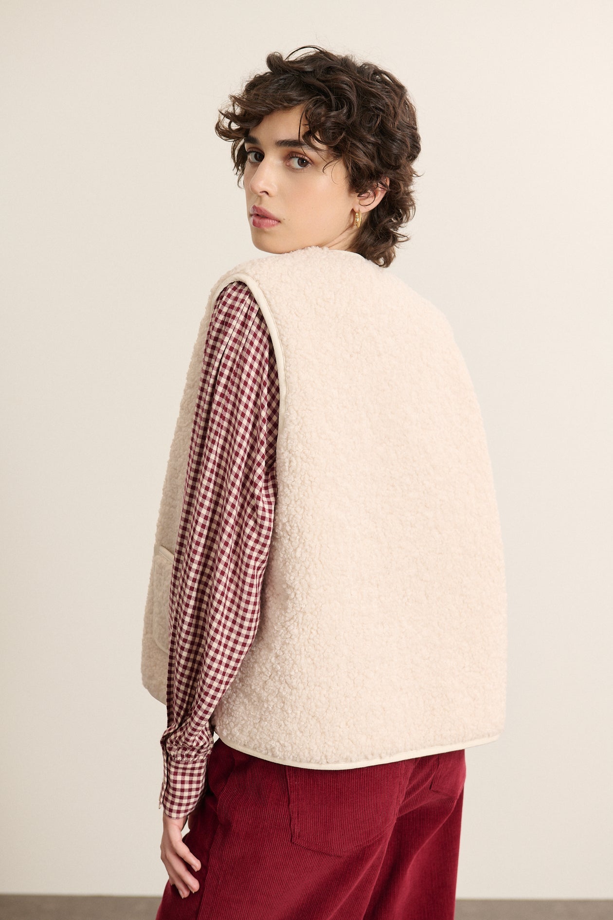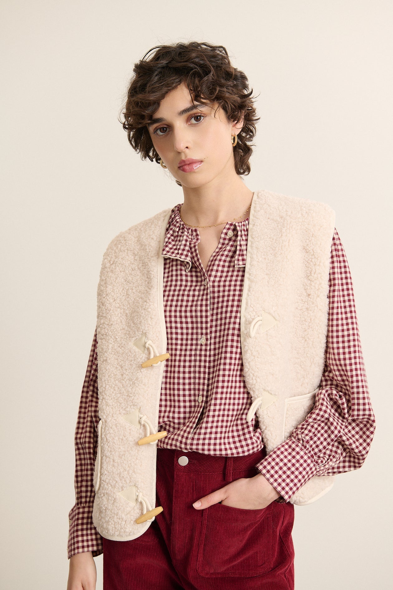 Garance Paris Polette Jacket in Ecru, a sleeveless jacket that warms up your looks with style. Made of a material that is both soft and light, it offers delicate comfort. Its toggle buttons and patch pockets make it practical and easy to combine, for a comforting outfit. Like a caress of softness, it envelops your days in a soothing warmth.