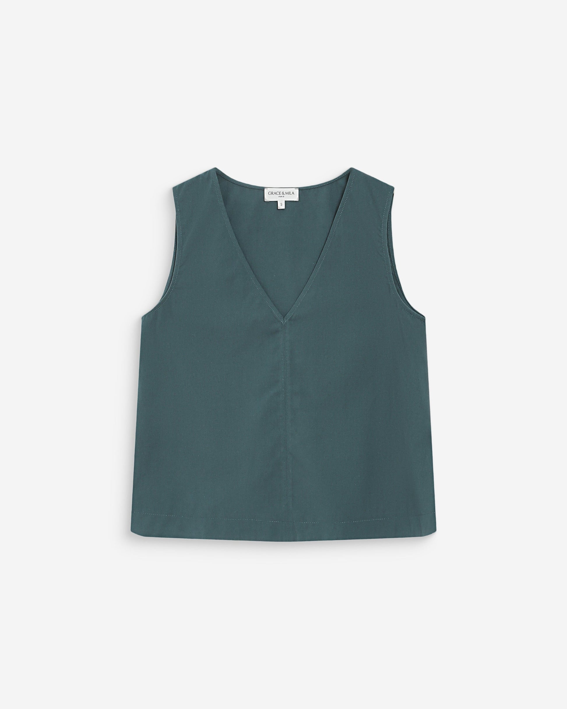 Grace & Mila Vagabond V-Neck Sleeveless Top in Emerald