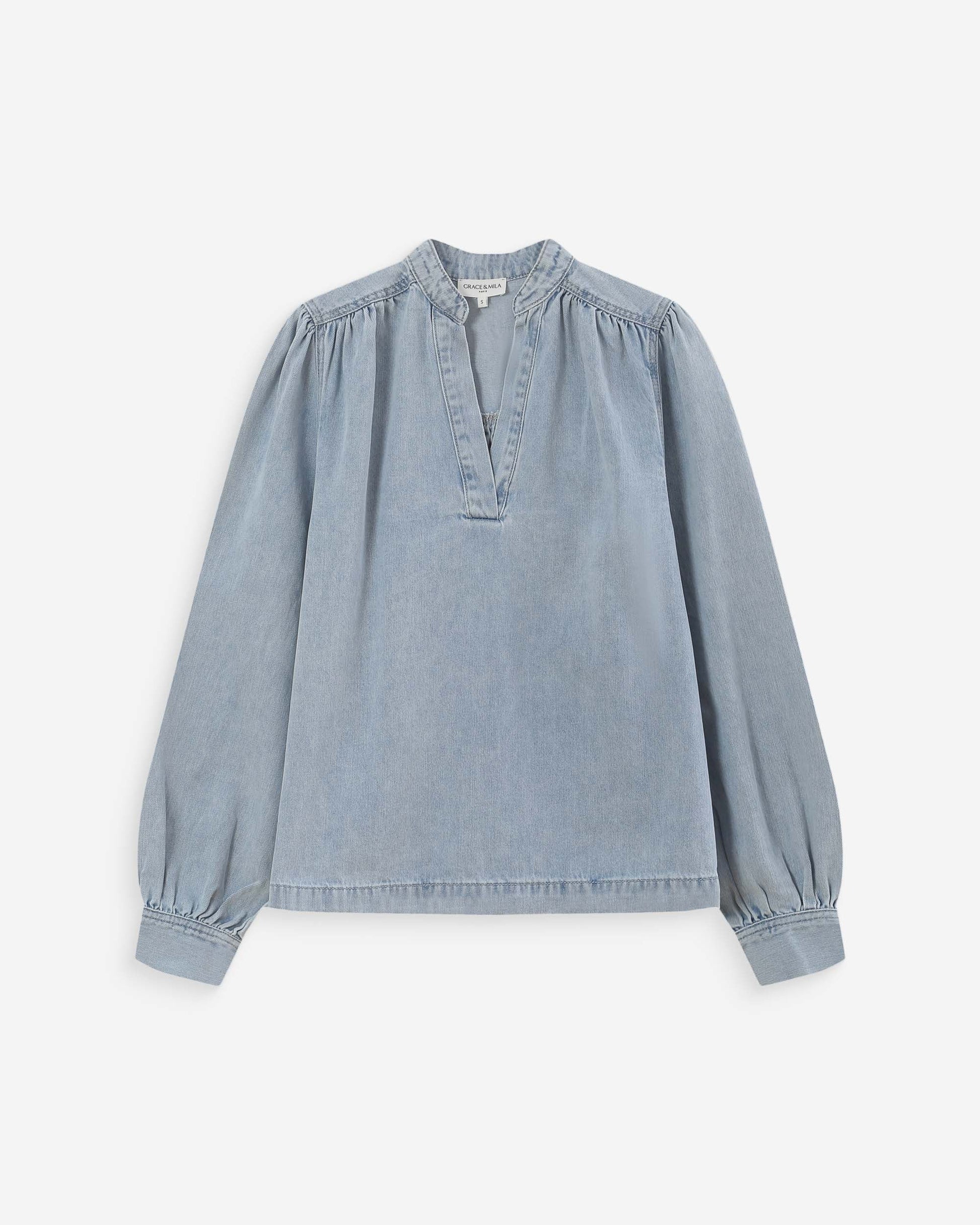 Grace & Mila Valory Straight Denim Blouse in Sky Blue
