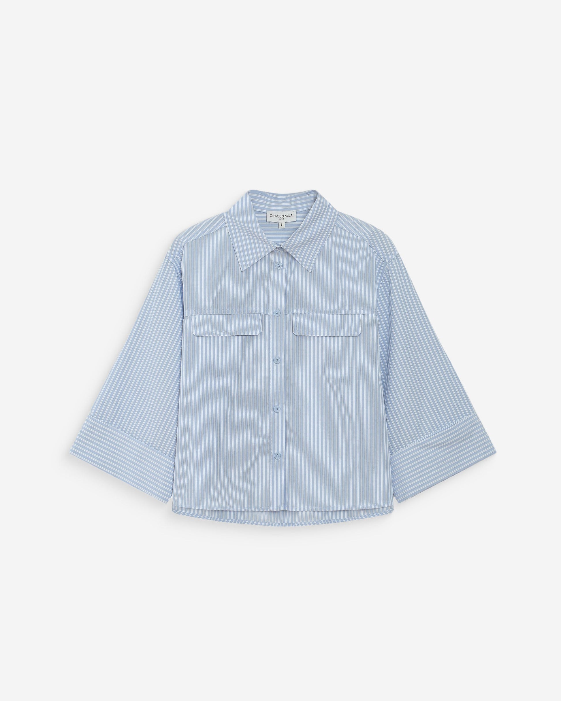 Grace & Mila Voice Short Striped Shirt in Ciel