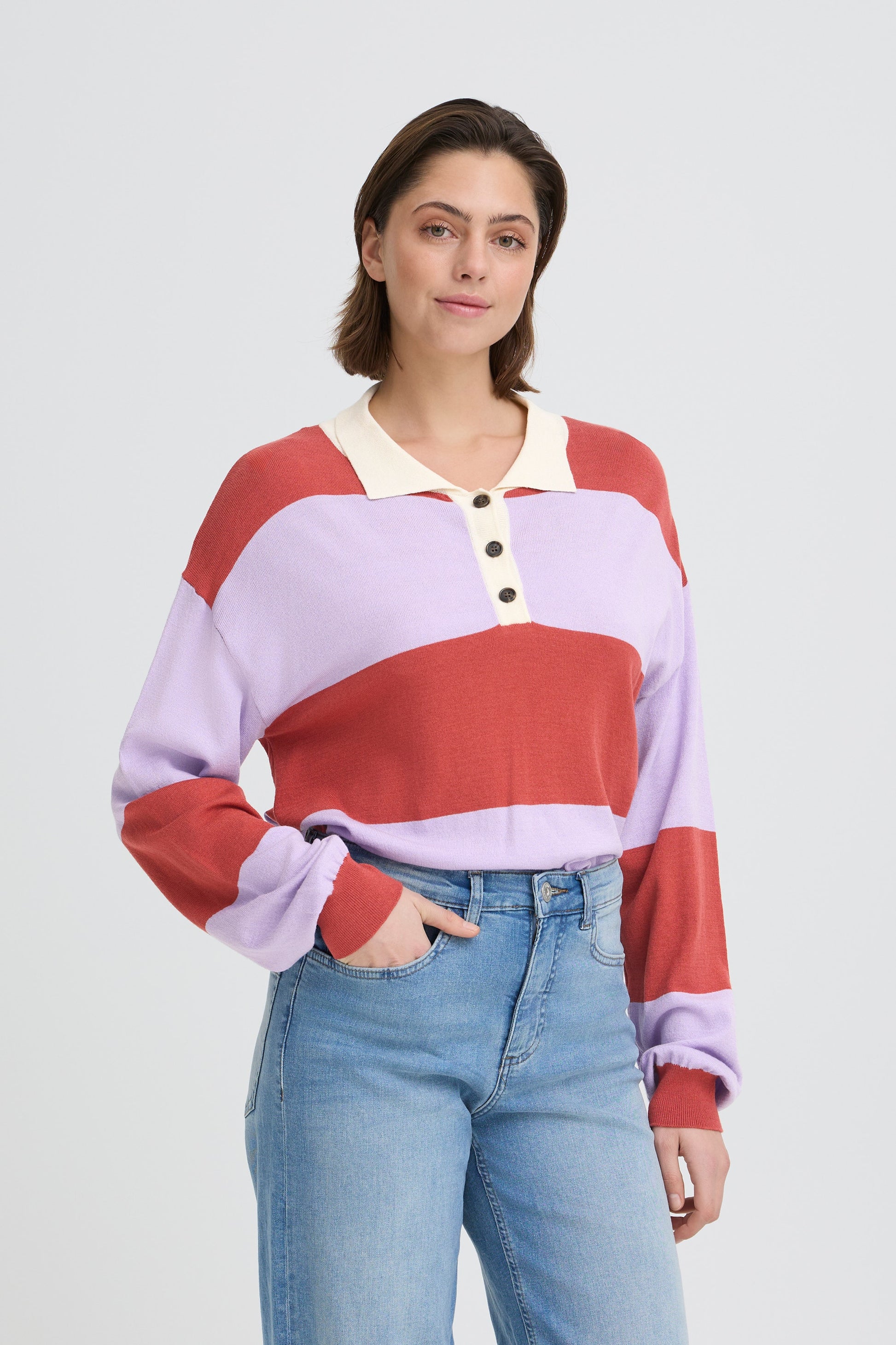Elevate your everyday wardrobe with the ICHI Boston Long Sleeve Top in Purple Rose Melange. This striped rugby shirt features a beautifully relaxed cut that flatters without compromising on structure. The soft, textured fabric invites all-day comfort, while the classic polo collar and long sleeves keep things refined. Ribbed cuffs add a polished touch that works whether you're dressing down or up. A versatile essential that effortlessly bridges the gap between laid-back and put-together.