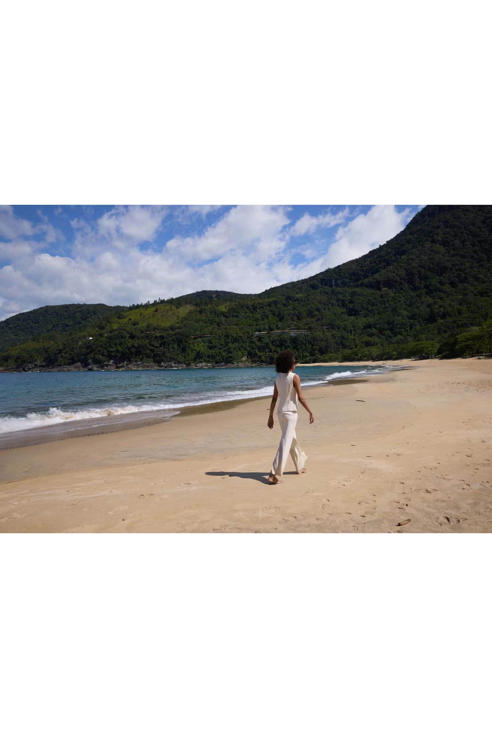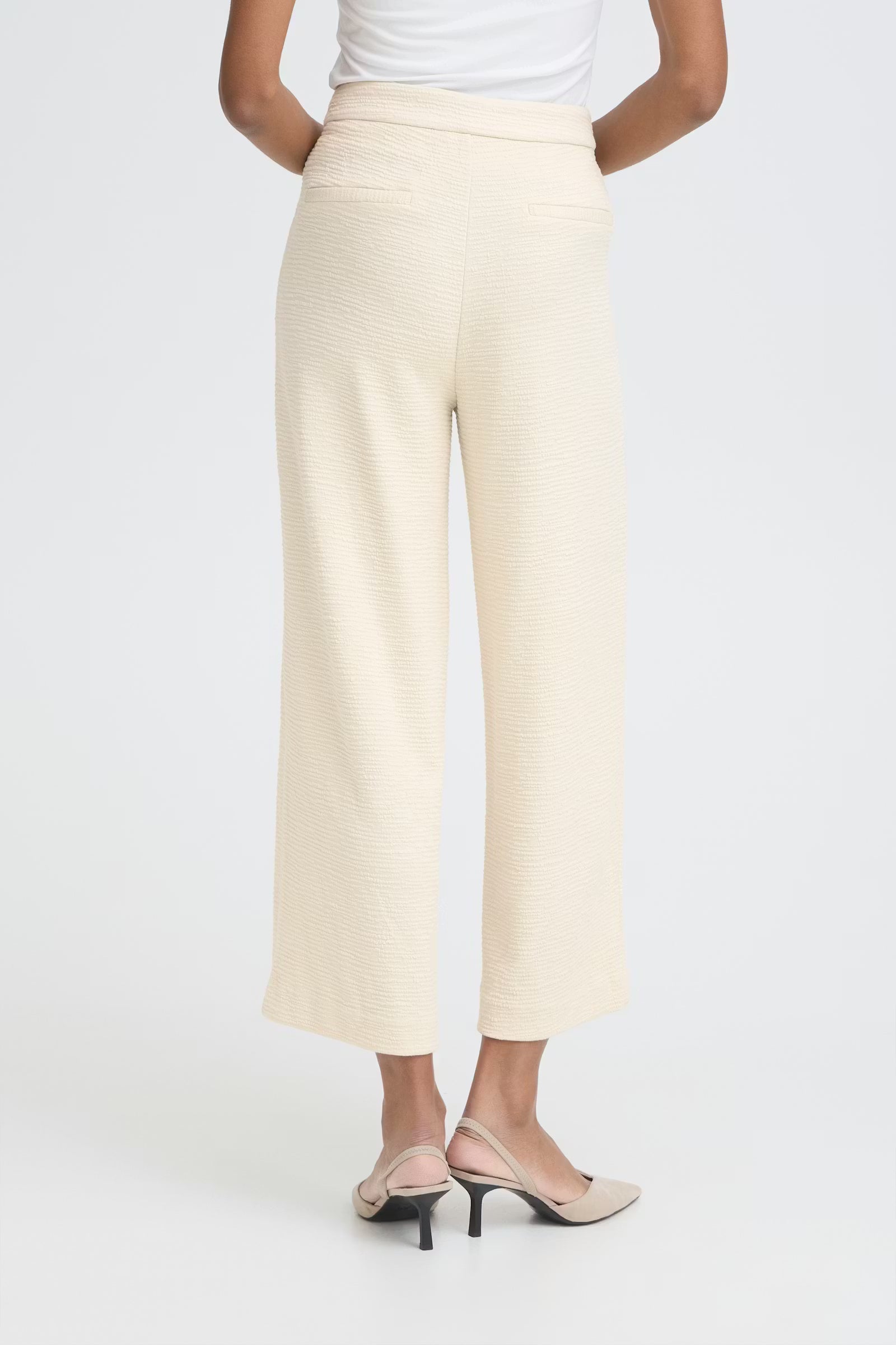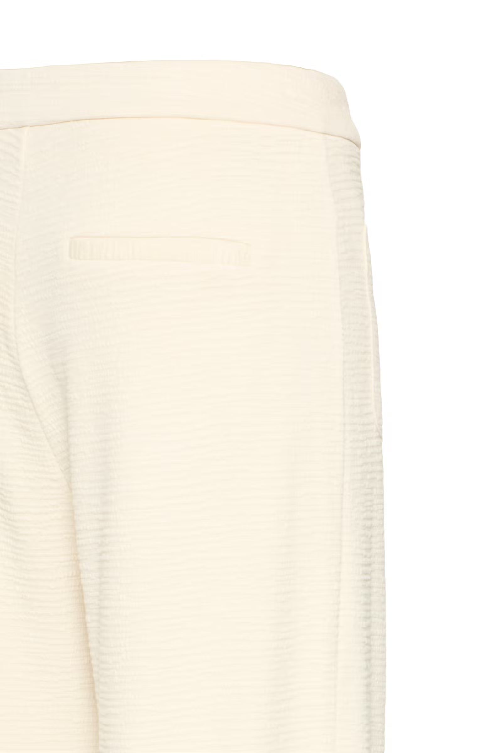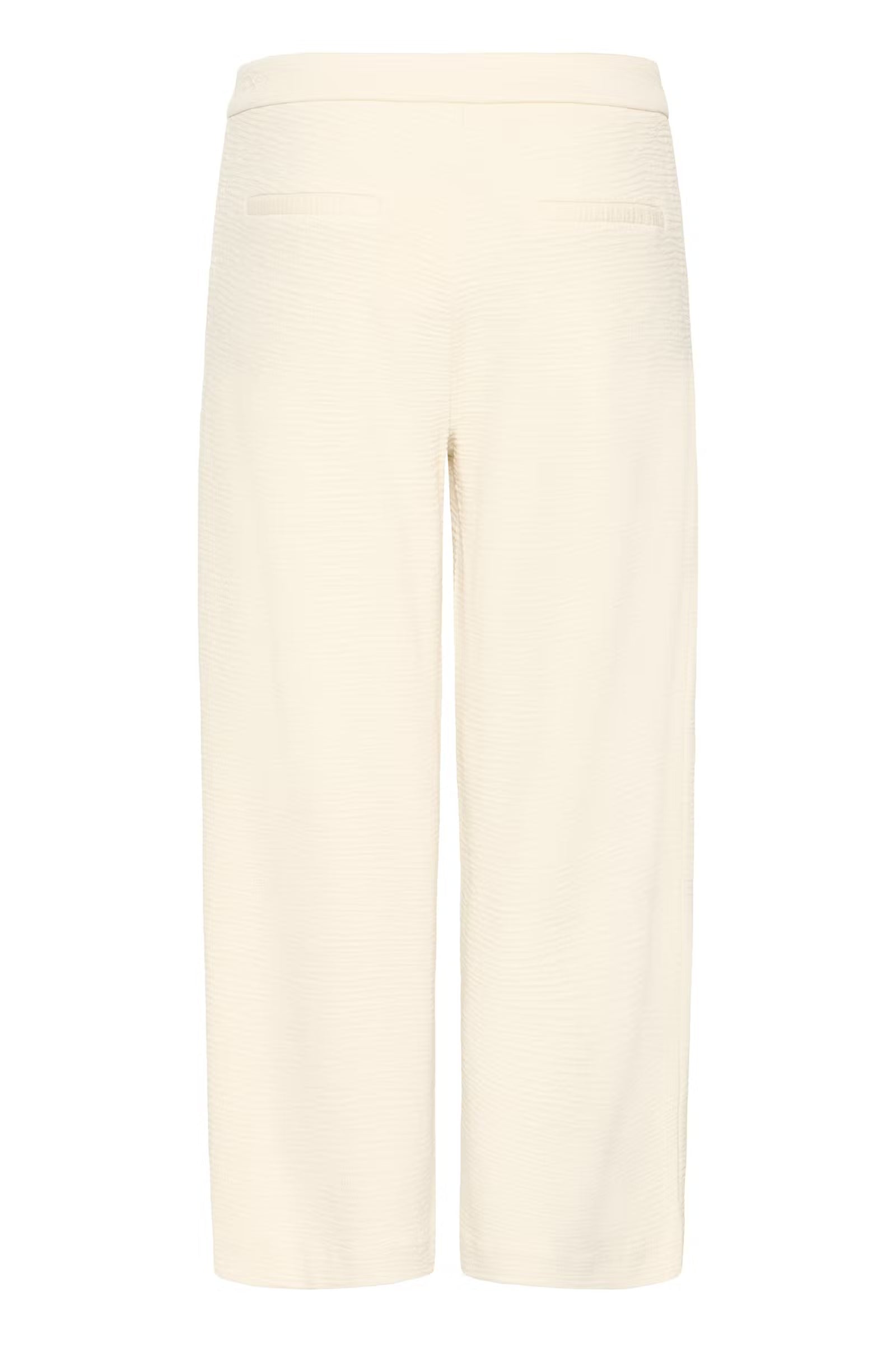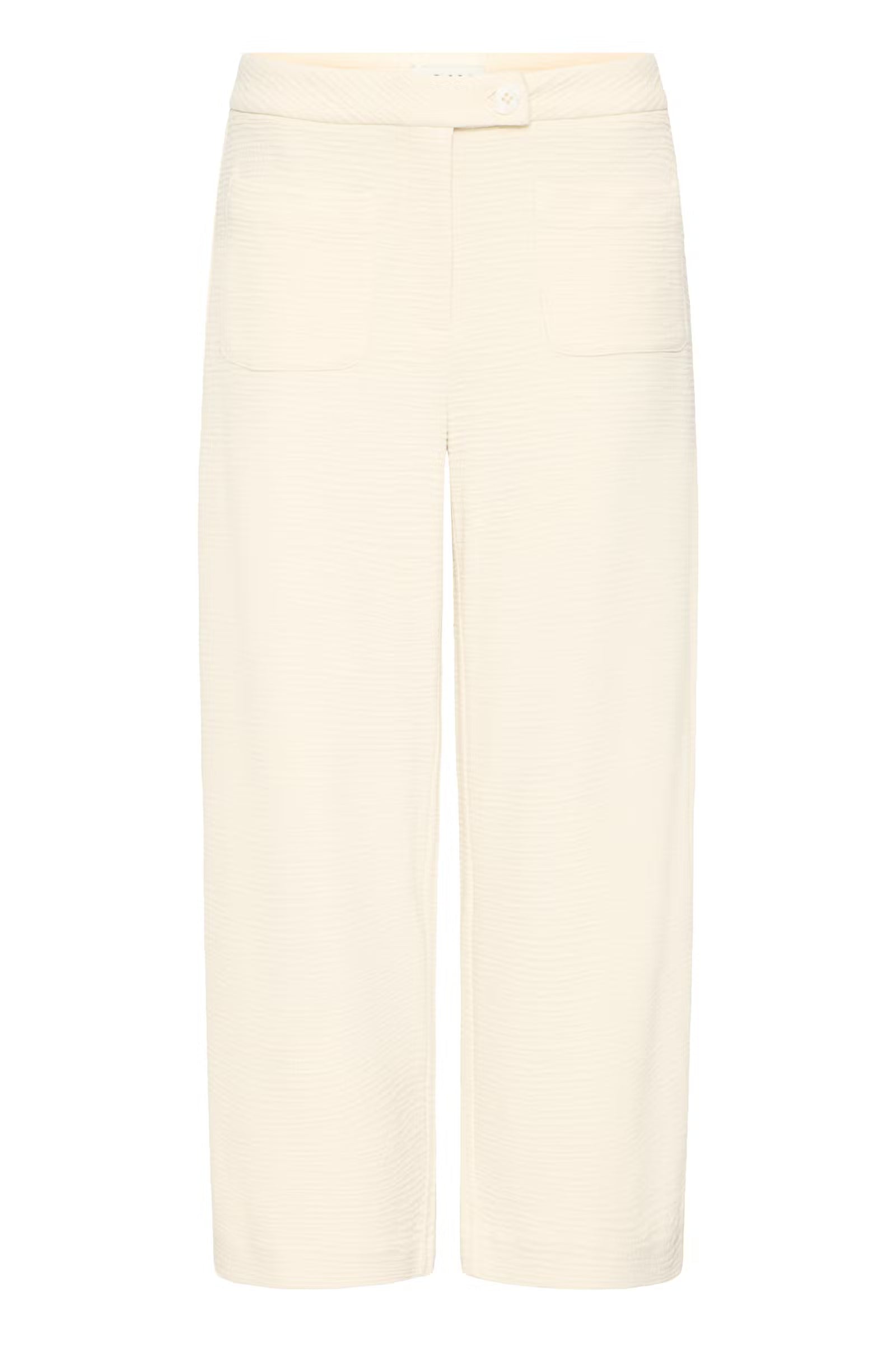 The ICHI Kate Cropped wide-leg pants with a straight silhouette and textured finish. Features two front patch pockets and a buttoned waistband for a minimal, polished look.
