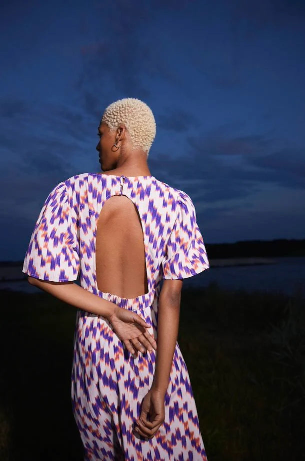 Look your best in the IHMeldoy Dress in Deep Blue AOP! This beautiful dress features a unique all-over print and comfortable, flattering fit that will turn heads at any occasion. Feel confident and gorgeous in this stunning dress!