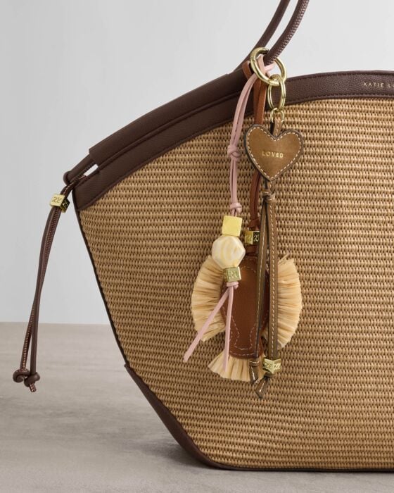 Katie Loxton Heart Charm Tag Keyring - Loved - in Caramel Suedette
