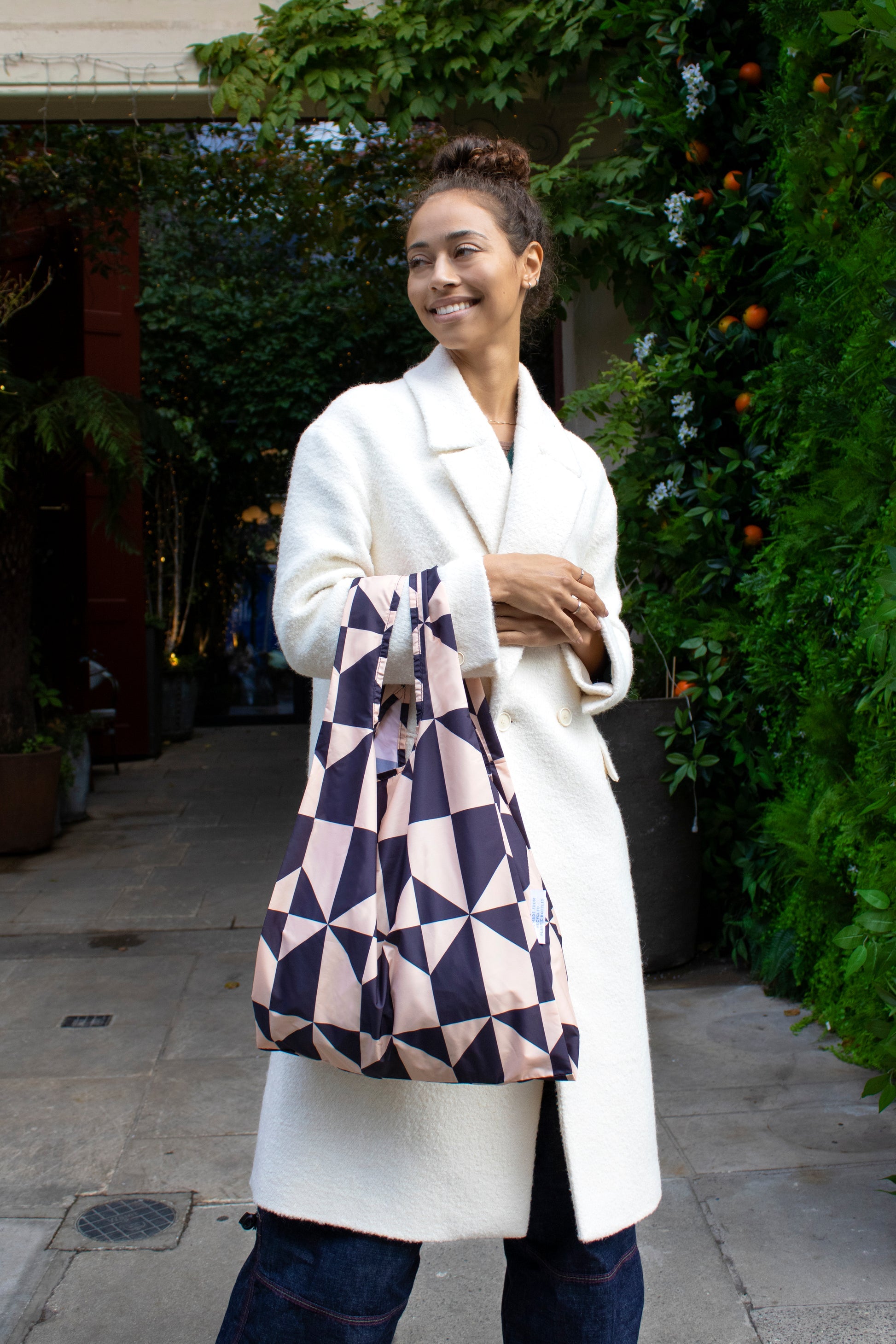 The original Kind Bag product, our Reusable Bag is your go-to accessory for everyday use. Made from 100% recycled materials, it is lightweight yet capable of carrying up to 20kg. The built-in pouch allows you to fold the bag into a compact size for easy storage in your handbag or backpack. Ideal for grocery shopping, errands, and travel, this bag combines practicality with sustainability, ensuring you're never without a reusable bag.
