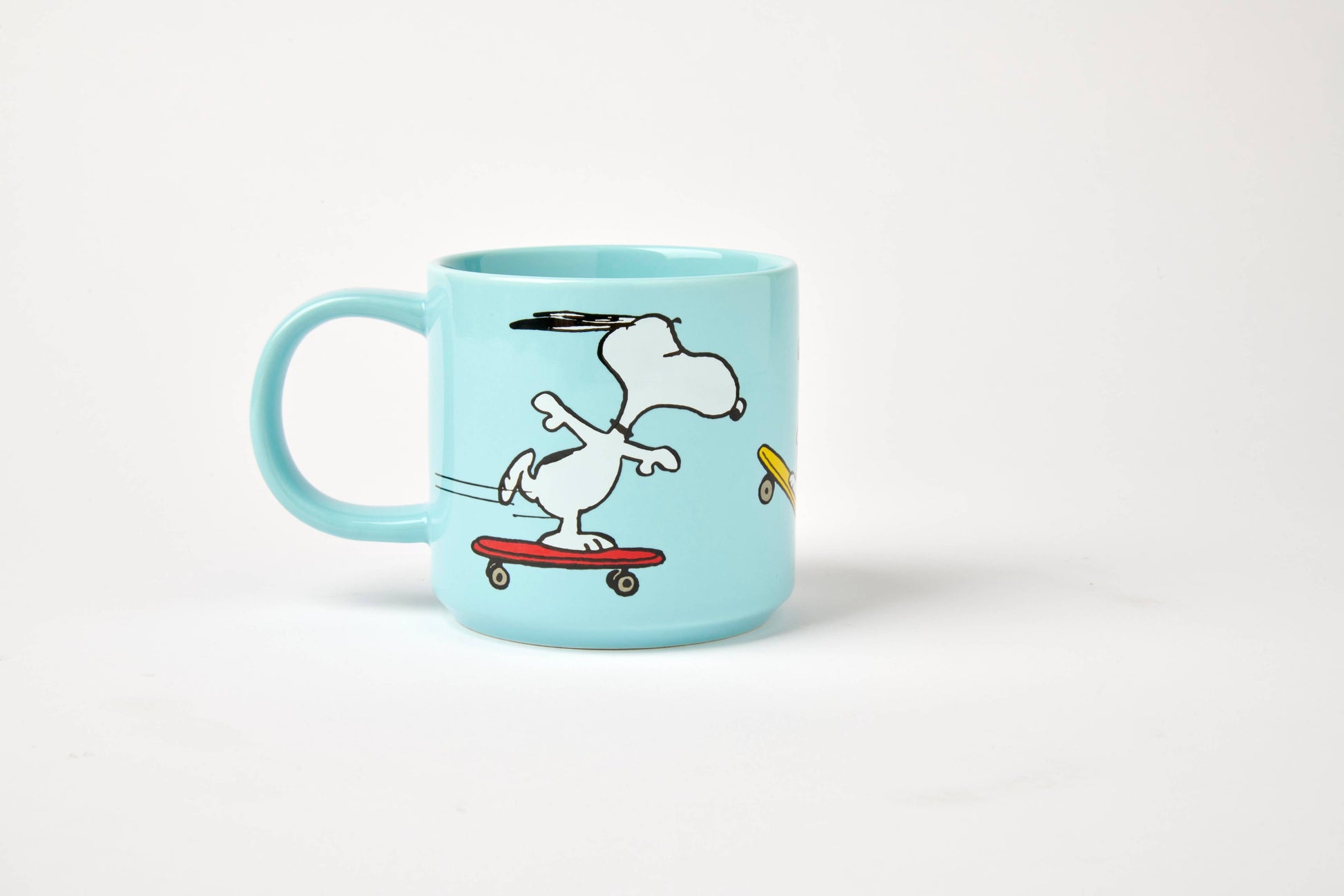 Kickstart your day with a dose of fun from this Magpie Peanuts Skateboard Mug! Featuring Snoopy showing off his cool moves on a skateboard, this durable ceramic mug is perfect for coffee, tea, or hot chocolate — a playful gift for Peanuts fans and skaters alike.