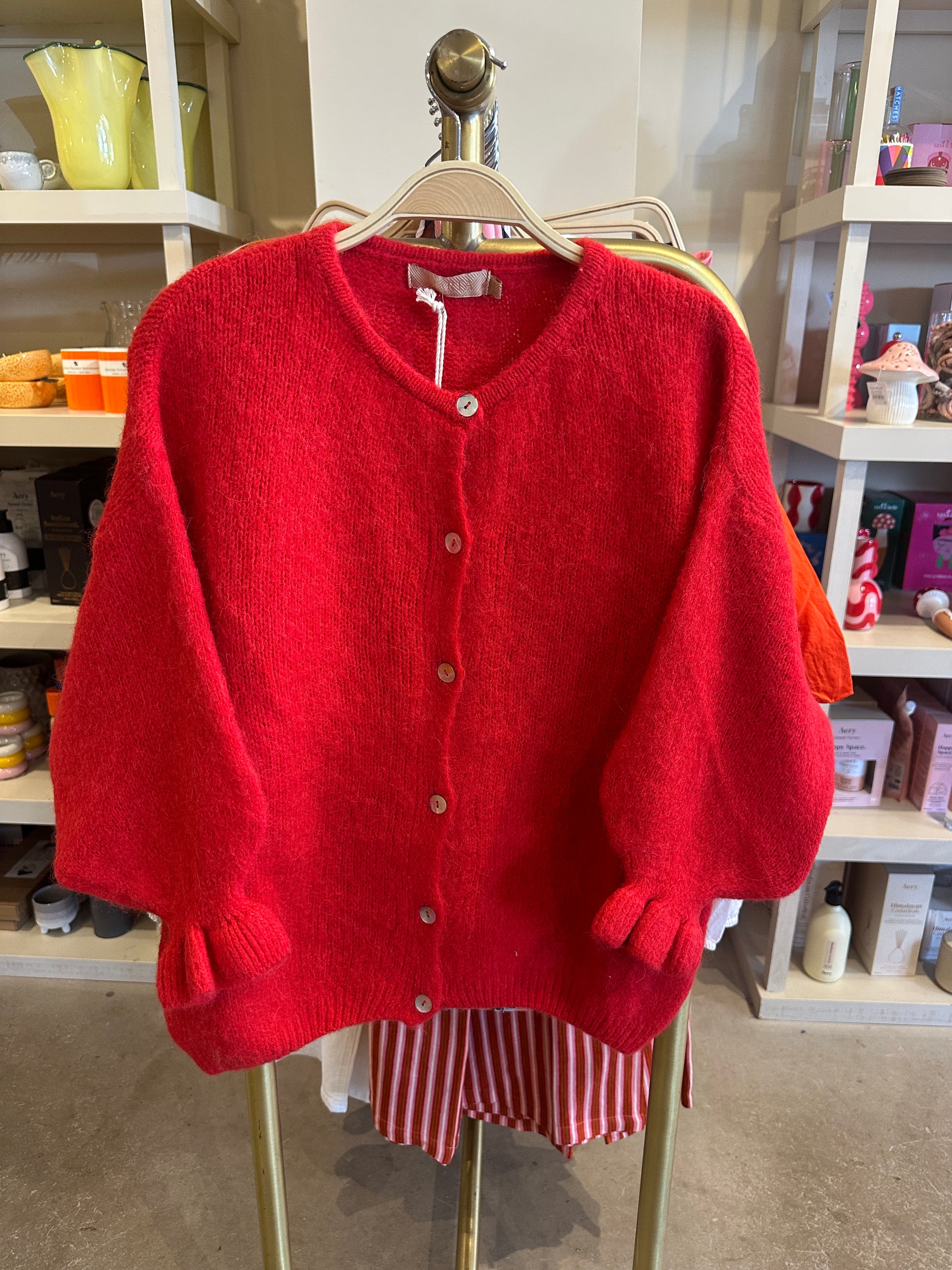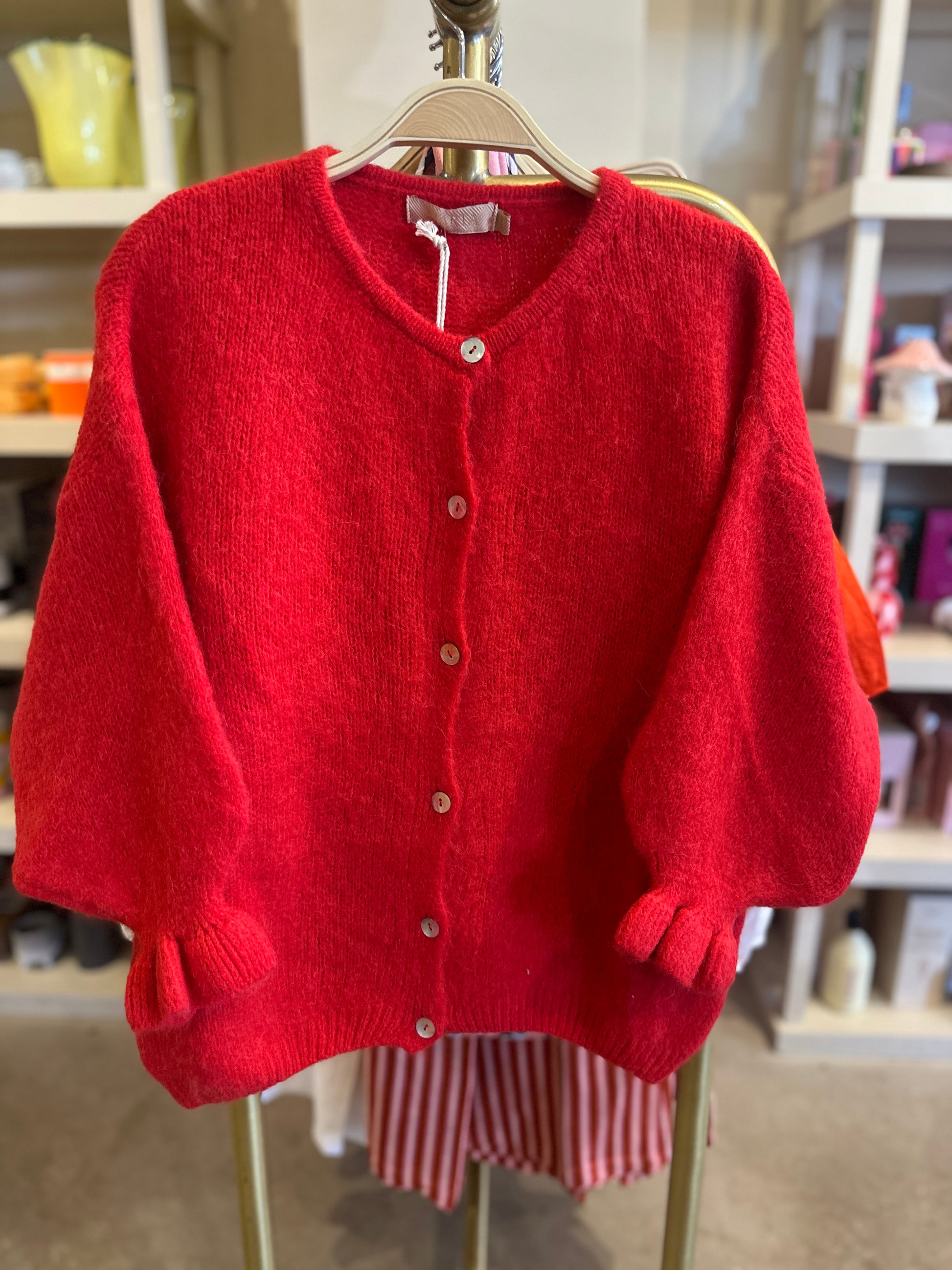 Our Bestselling cardigan the beautiful frill sleeve Juliana here classic red colour to take you through every season and add a pop to your outfit. Super soft to the touch Alpaca mix.