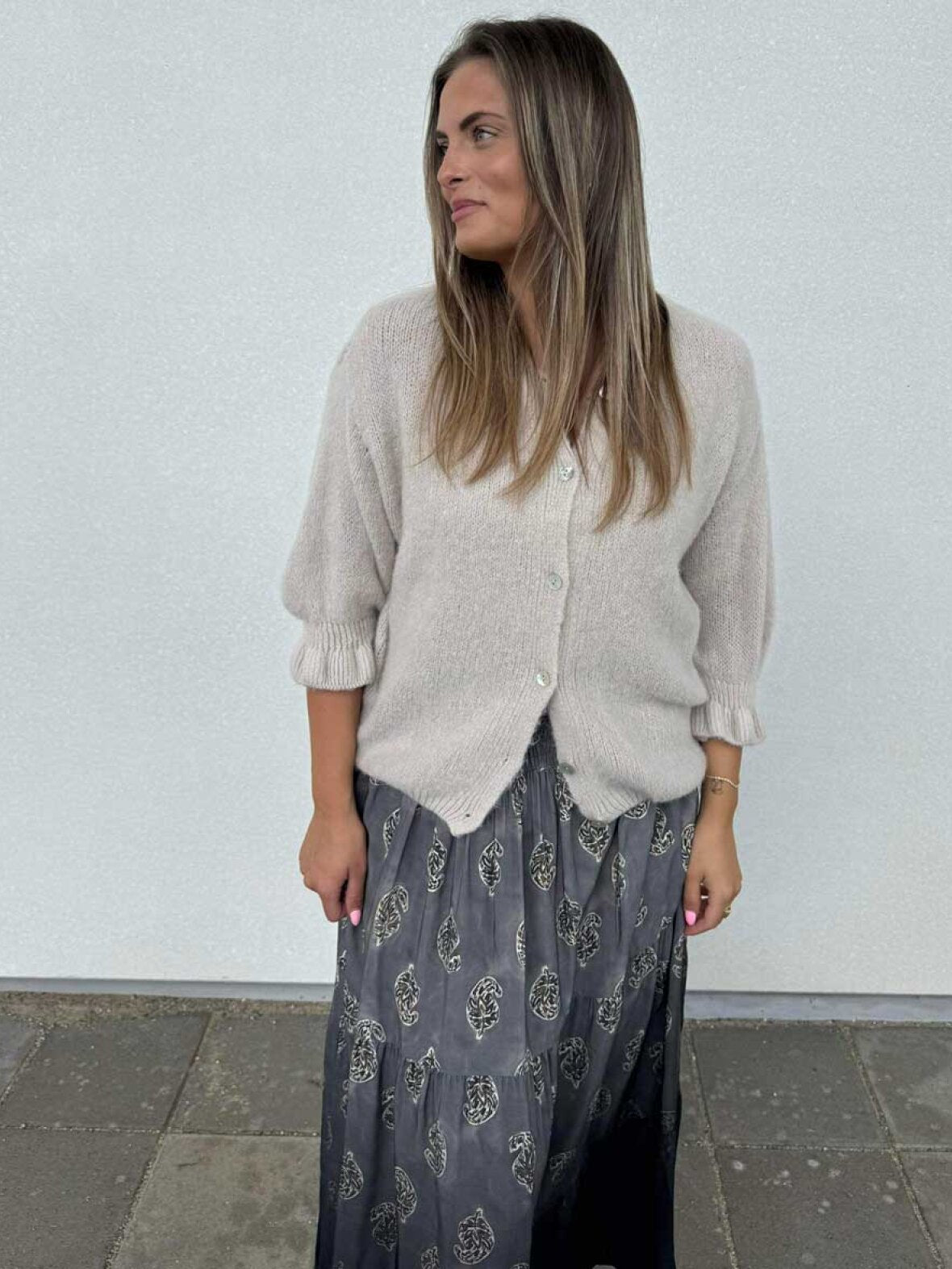 A slouchy fit cardigan with 7 mother of pearl buttons