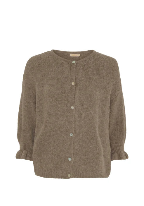 Our Bestselling cardigan the beautiful frill sleeve Juliana here in Fango. Super soft to the touch Alpaca mix.
