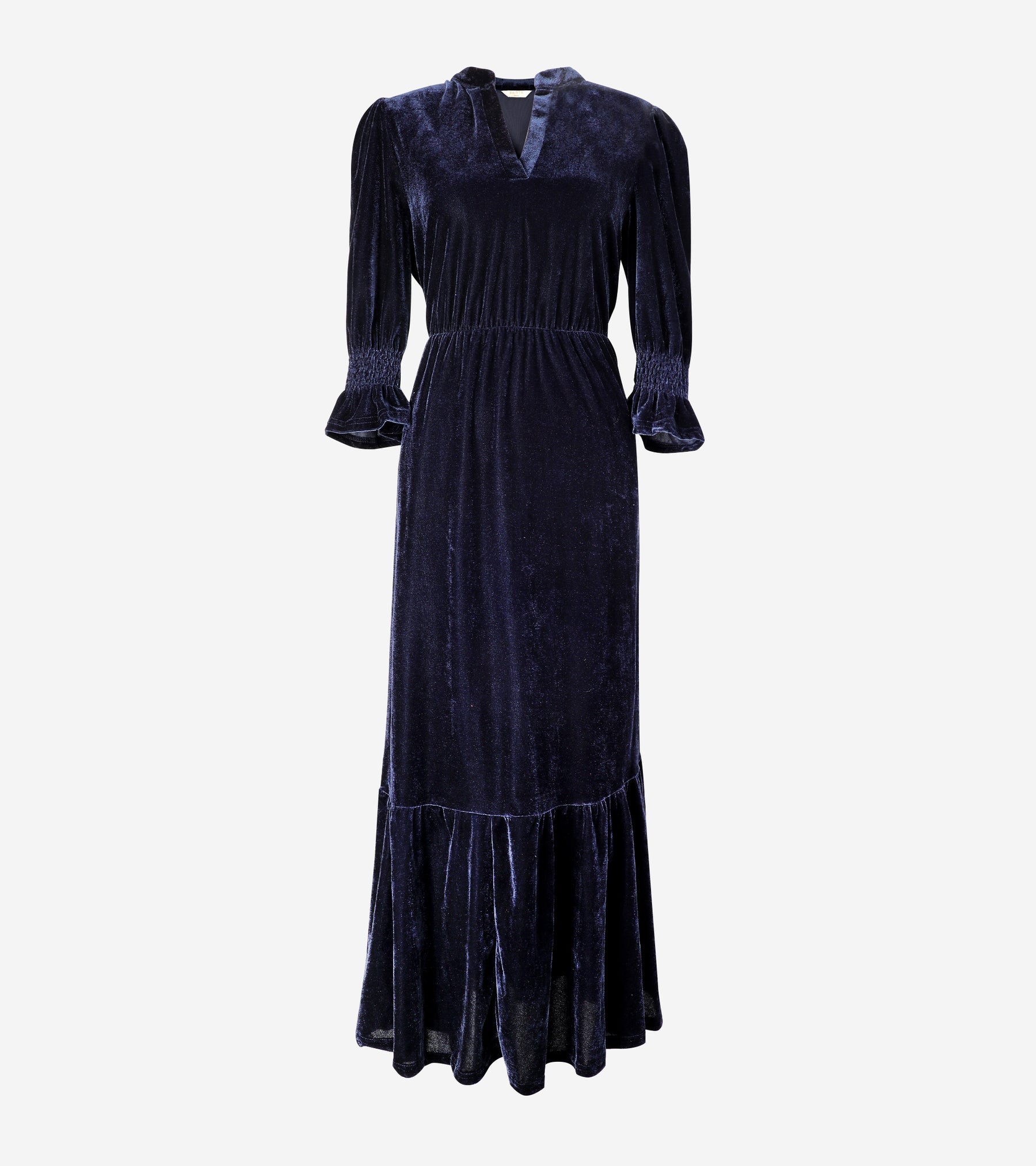Pandora V-Neck Midaxi Dress- Navy Blue, Velvet