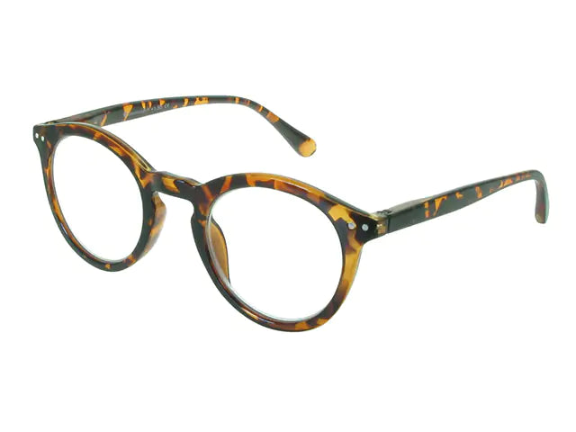 These 'Embankment' reading glasses feature a stylish round frame finished in classic tortoiseshell. Complete with sprung hinges for extra comfort and a grey felt Goodlookers carry pouch for safekeeping.