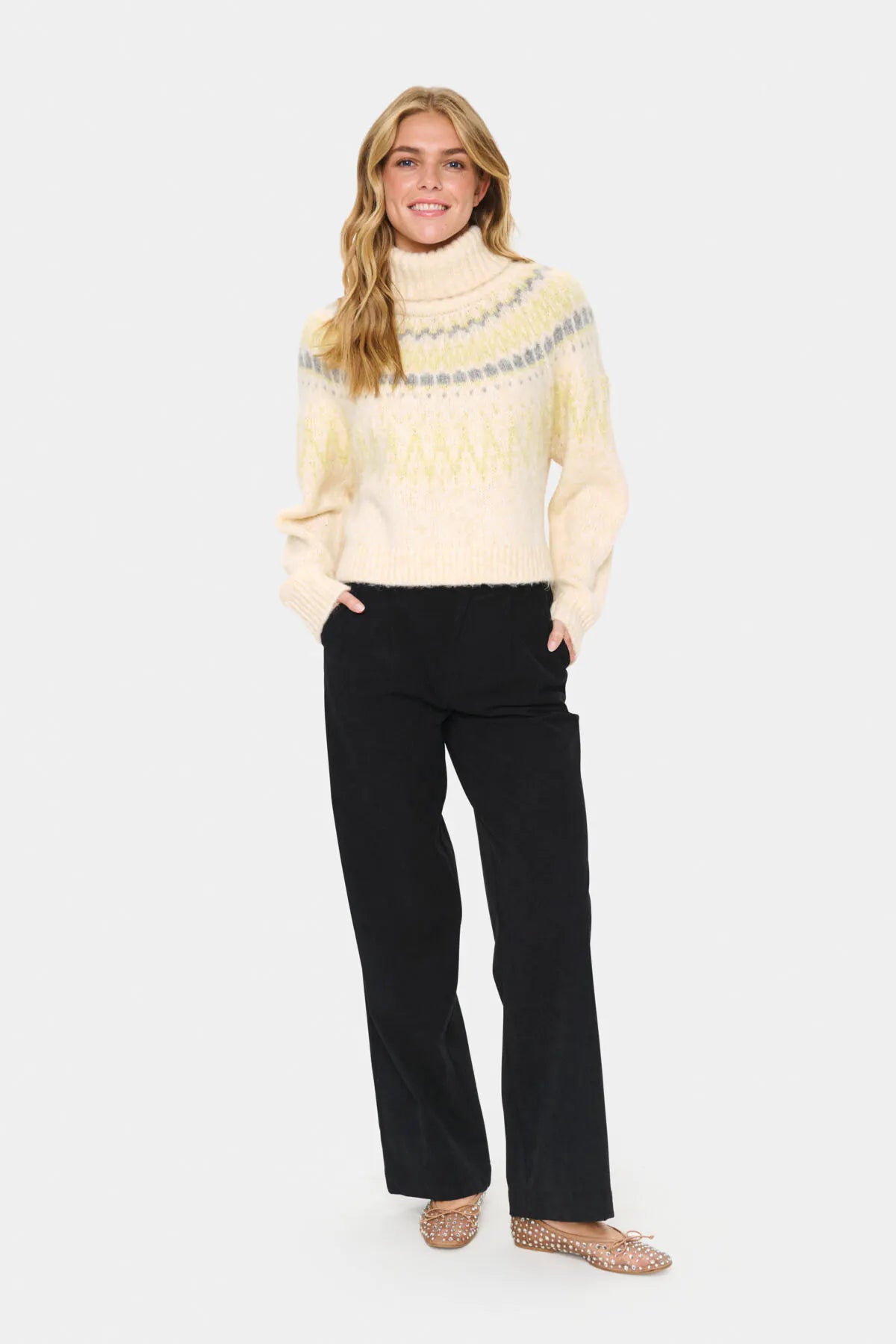 Elevate your winter wardrobe with the Saint Tropez Megna Rollneck Pullover in Ice Melange. This sophisticated knit combines timeless style with everyday comfort, featuring a classic rollneck that frames the face beautifully and the soft, mottled ice melange fairisle adds subtle visual interest while maintaining an effortlessly chic aesthetic. Perfect for layering or wearing solo, this versatile piece becomes an instant staple you'll reach for season after season.