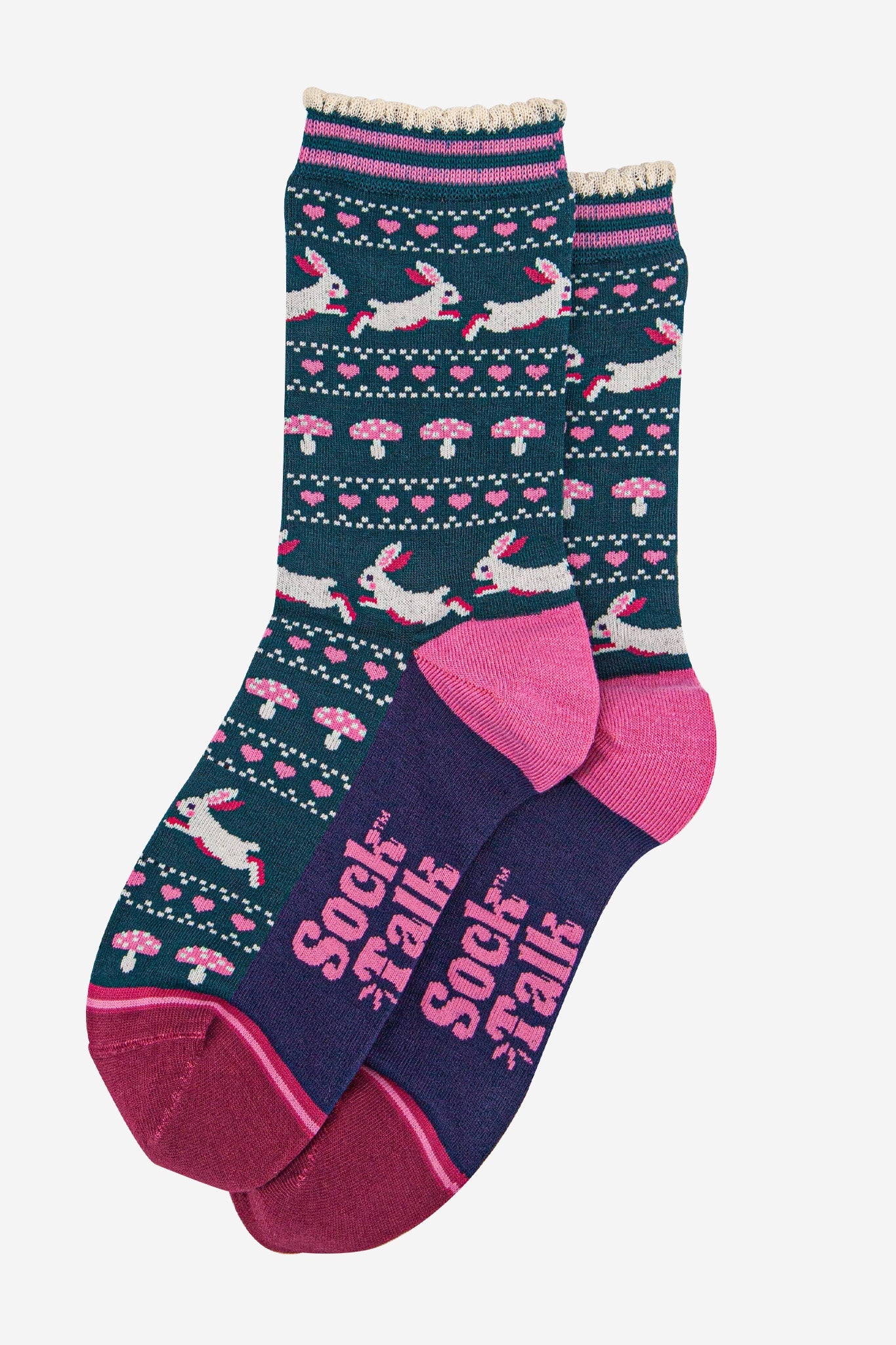Women's Bamboo Socks - Forest Green/Navy Blue, Rabbit and Toadstools