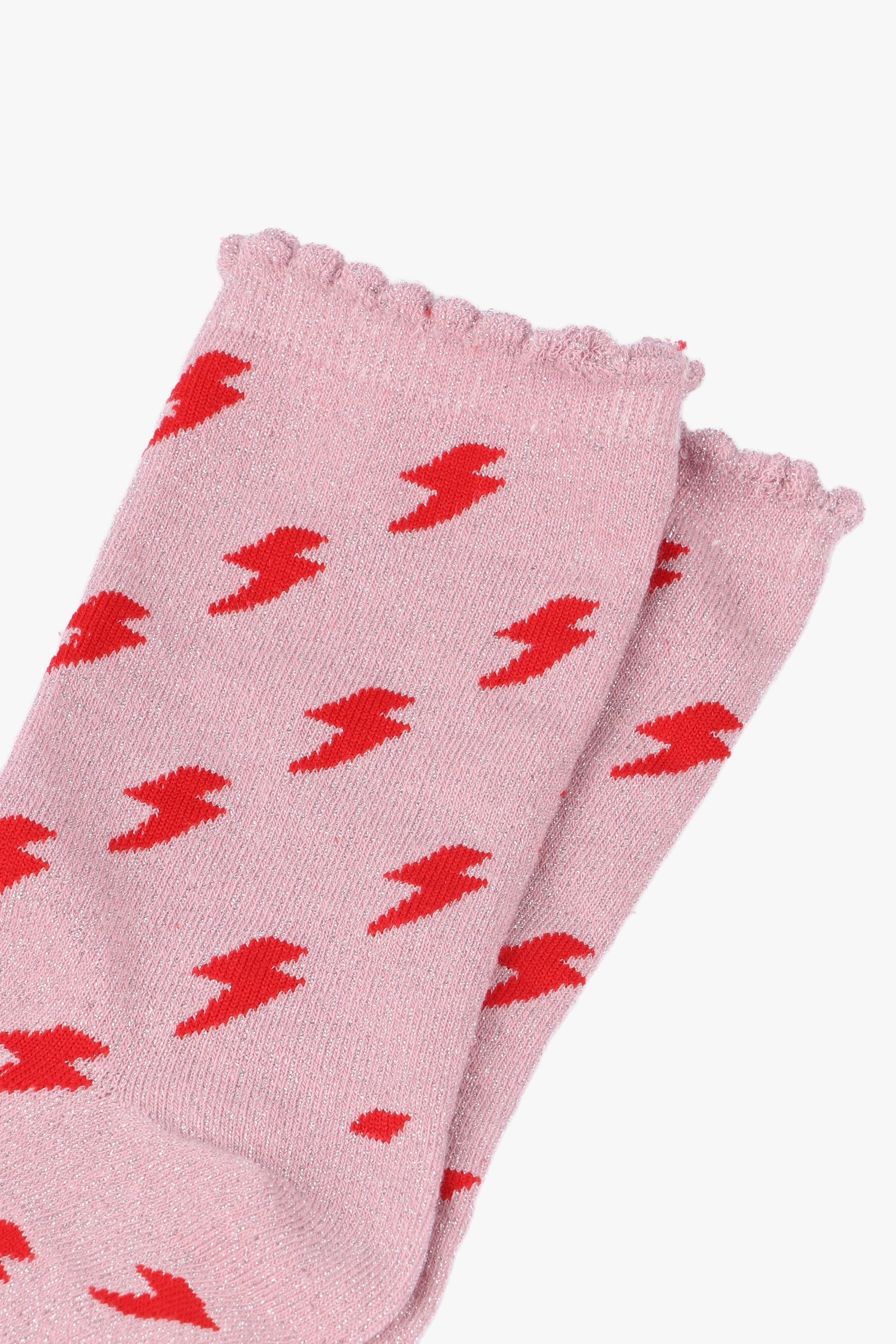 Women's Glitter Socks - Pink/Red, Lightning Bolts
